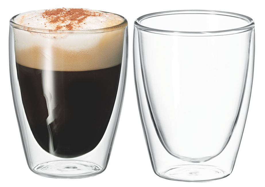 The contemporary Australian designed Avanti twin walled glasses are simply beautiful. The set of two 250ml glasses are made from heat resistant borosilicate glass. The twin walled design maintains the temperature of hot or cold drinks and preventing condensation or heating of the outer surface.