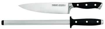 The Cuisinart 2pc Ice Hardened Professional Set makes the perfect gift for someone looking to have the key pieces in the kitchen. The knife is made up of high quality German stainless steel that is ice hardened for superior blade strength. At 20cm long, the knife's razor-sharp edge is hand ground at 20 degrees. Also designed with a fully tang blade and ergonomic handles for comfortable use, the knife also features perfect weight and balance between handle and blade for easy use. The 26cm diamond sharpener oval profile enables faster sharpening to save time and effort. Featuring a ergonomic handle that fits perfectly in the hand and a handy safety guard protects your fingers.