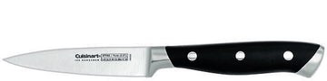 The Cuisinart Ice hardened Paring knife is designed to pare and peel fruits and vegetables. The knife is made up of high quality German stainless steel that is ice hardened for superior blade strength. At 9cm long, the knife's razor-sharp edge is hand ground at 20 degrees. Also designed with a fully tang blade and ergonomic handles for comfortable use, the knife also features perfect weight and balance between handle and blade for easy use.