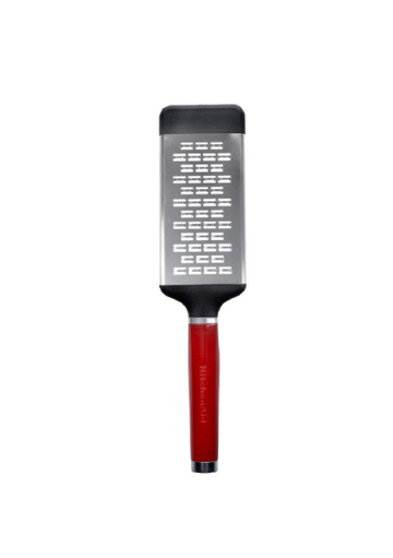The KitchenAid Classic Flat Grater is made from strong stainless steel to easily zest and grate anything from garlic and ginger to citrus zest, cheese and chocolate. The grater uses medium serrations suitable for a multitude of uses, perfect for most kitchen needs.