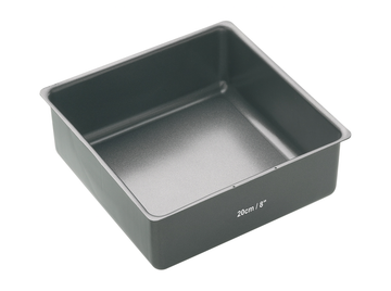 Ideal for making delicious fruit and sponge cakes, including impressive wedding and celebration cakes. Manufactured from heavy duty commercial weight 1mm steel, featuring a loose base and a double non-stick coating that ensures easy release, this deep cake pan forms part of the MasterCraft award winning collection that guarantees many years of satisfying cooking and baking. Various sizes of square deep cake pans available.