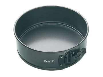Ideal for making a variety of fruit, sponge and cheesecakes, including wedding and celebration cakes. Manufactured from heavy duty commercial weight 1mm steel, the double non-stick coating and the loose base ensure easy release every time. This springform cake pan forms part of the MasterCraft award winning collection that guarantees many years of satisfying cooking and baking. Various sizes of springform quick release cake pans available.