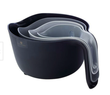 The main mixing bowl is made of premium matte black plastic and the other three pieces feature beautifully muted classic colours.