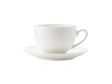 The White Basics Collection is designed with everyday use in mind, the wide variety of shapes and styles available in our White Basics collection will inspire you to mix and match in countless combinations. With an understated elegance, the Diamonds range features porcelain embossed with a rippling faceted pattern. The Diamonds Demi Cup and Saucer is designed to complement any setting, and the ideal partner to our White Basics range. Made from microwave, oven and dishwasher safe porcelain.