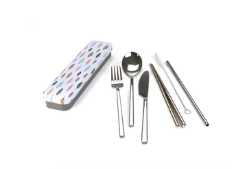 Say no to disposable cutlery with your packed lunches and takeaways by making a switch to this Carry Your Own Cutlery set! This set includes a reusable fork, knife, spoon, chopsticks, straw, and a straw cleaning brush made from high quality stainless steel thanks to its durable and long-lasting properties. This stainless steel set is the ideal gift for your friends and family with this beautiful Flatware design.