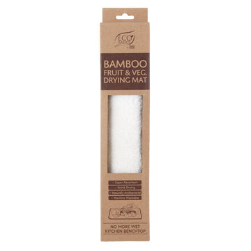 Dry those fresh fruit and vegetables faster and more hygienically on the Eco Basics Bamboo Fruit & Veg. Drying Mat. This mat is made from a combination of Microfibre and Bamboo fibre which is more then 40% more absorbent then cotton and can absorb 3 times its own weight. Quick drying and able to be washed hundreds of times this mat is an eco friendly option for your kitchen.