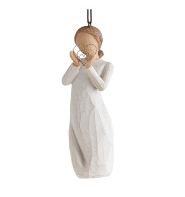 For holidays or for everyday, ornaments celebrate life's milestones in a small, commemorative format. This ornament has a brown elastic cord for hanging. Delicate outlines of concentric hearts sparkle with an expression of love that can range from friendly, affectionate, romantic, abiding… this figure has universal appeal in both symbol and sentiment.